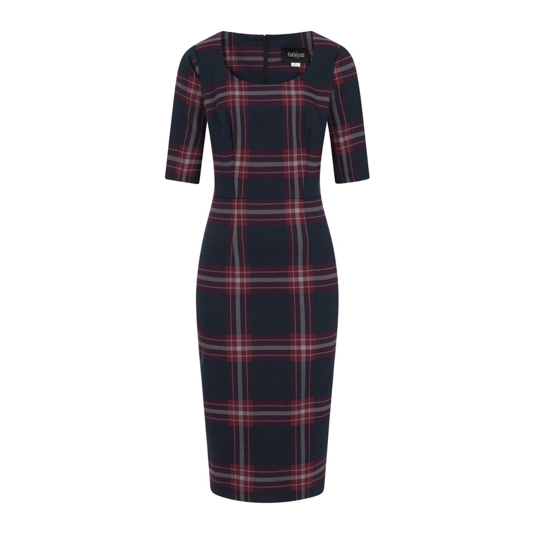 Experience the perfect combination of style and comfort with Collectif's Amber Retro Blanket Pencil Dress. Featuring a scoop neck, elbow-length sleeves, and a hem vent for ease of movement, this fitted dress is versatile for both work and play. Made with a bespoke fabric of petrol blue and burgundy and grey check, Amber is a must-have for any wardrobe.