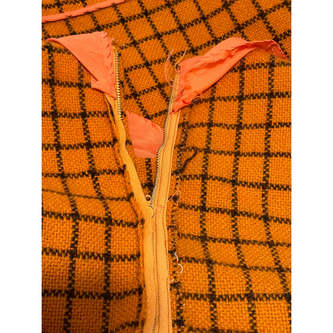 Handmade Vintage 60s Orange Check Shift Dress
