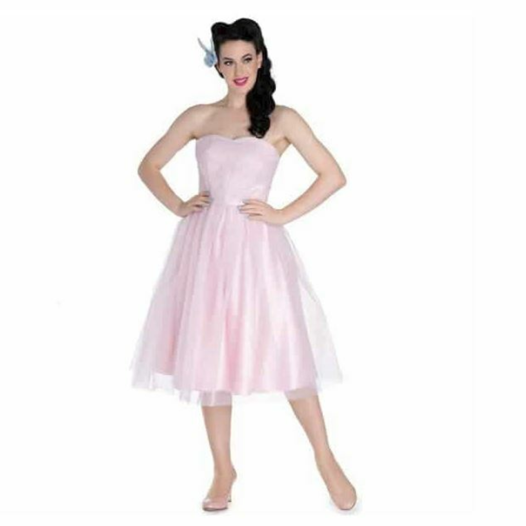 Tamara dress by Hell Bunny is a pink pleated tulle lined strapless dress. It has the most gorgeous ’50s silhouette . With a nylon boned bodice & preformed cups in bodice, the Amelia ’50’s dress guarantees a perfect fit. The Tamara dress by Hell Bunny seams over the bust to shape. Please note, because of the boning, the Tamara dress by Hell Bunny is a smaller size than traditional Hell Bunny sizing so please refer to the size chart.