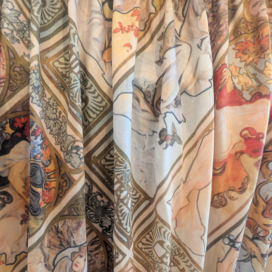 An ode to the golden age of art nouveau, this pattern weaves together Alphonse Mucha’s iconic allegories of the seasons – Spring, Summer, Autumn, and Winter – in a flowing tapestry of flora, symbolism, and sinuous linework. Each panel tells a story of nature’s cycle, from the bloom-drenched innocence of printemps to the hush and hush of hiver. Feminine, ethereal, and decadently vintage, this is a print for the romantics, the artists, and the ones who still believe in beauty as a form of rebellion.